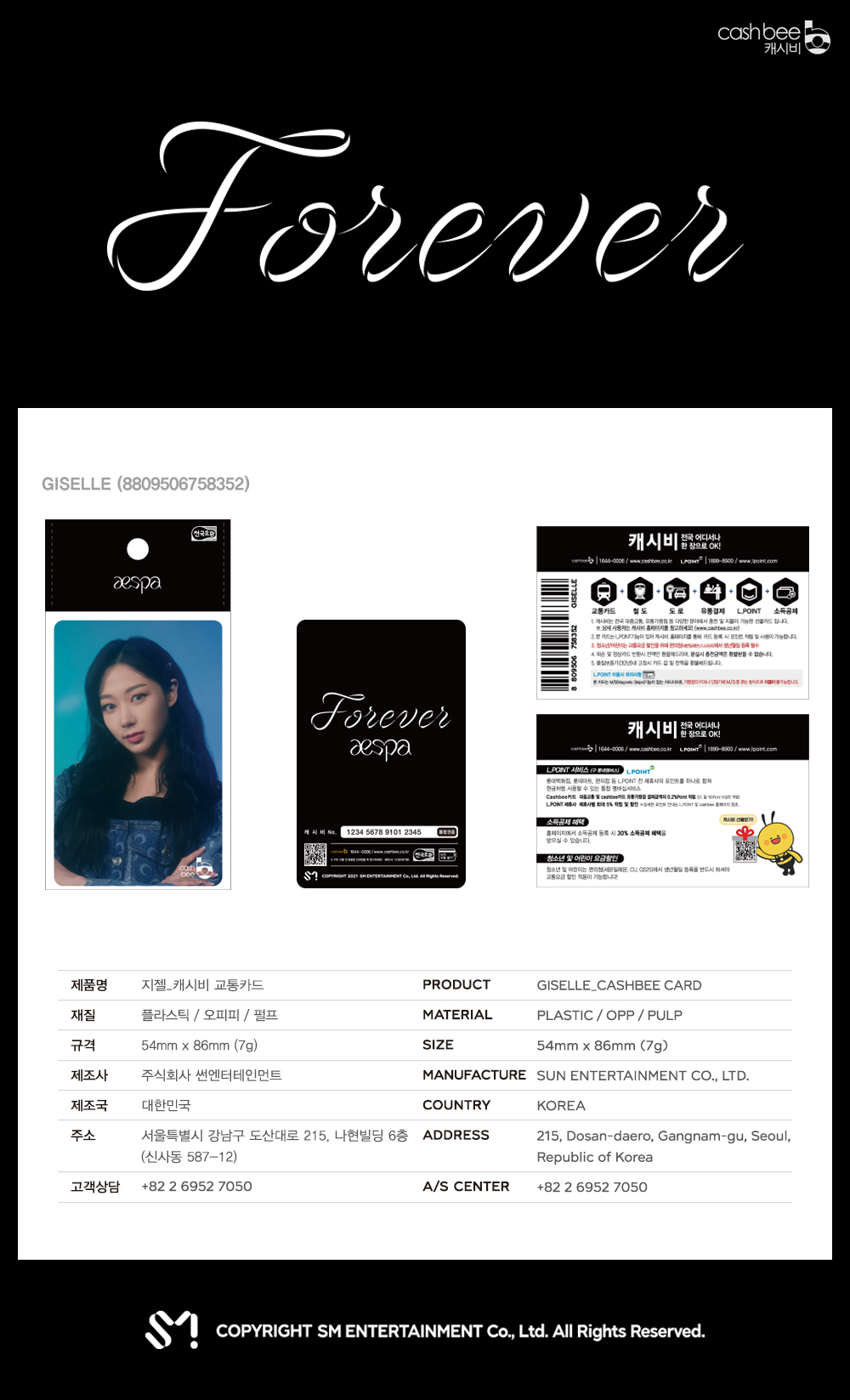 詳細情報運営方針レビューNOTICE* アウトケースは商品保護用制作されスクラッチ及び傷、変色などが包装/配送過程で生じる可能性がございます。これによる交換・返品はできかねます。aespa Traffic Card (GISELLE Ver.) PART * The outer case is just for protecting goods. (scratches and discoloration on the case can not be the reason for exchanging or returning * 제품사양 - 교통카드 : 54 x 85mm - 리플렛(안내장) : 54 x 86mm - OPP 비닐 : 62 x 120mm INFORMATION 商品情報提供商品名 : aespa - 交通カード(GISELLE Ver.)原産地 : Korea製造/輸入 : (주)썬엔터테인먼트 (주)썬엔터테인먼트品質保証基準 : 関連法及び消費者紛争の解決規定に従うAS 責任者の連絡先 : Ktown4u, 02-552-0978
