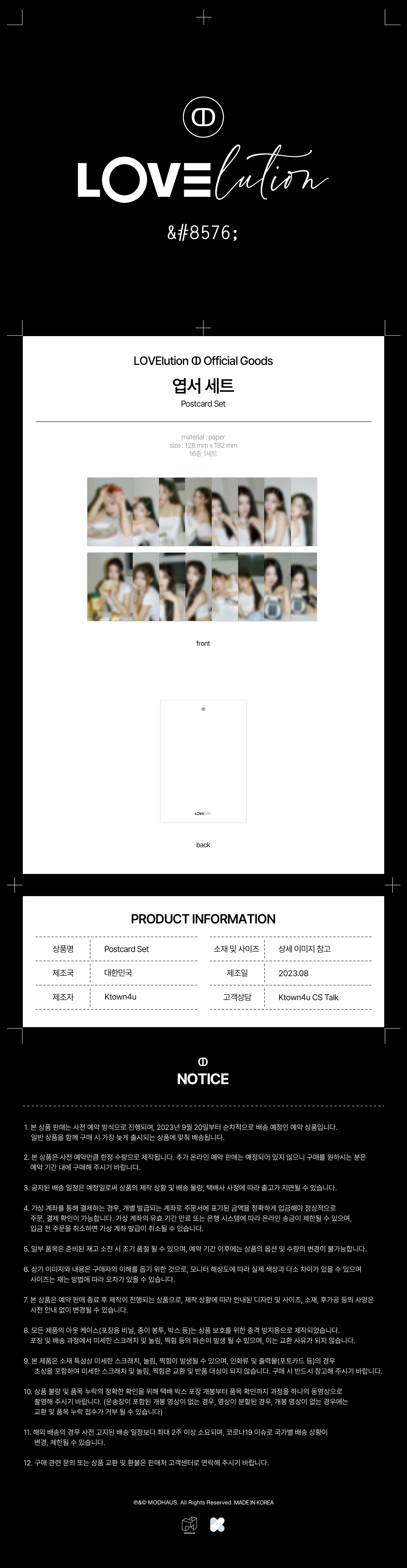 詳細情報運営方針レビューNOTICE* アウトケースは商品保護用制作されスクラッチ及び傷、変色などが包装/配送過程で生じる可能性がございます。これによる交換・返品はできかねます。tripleS POSTCARD SET [LOVElution] PART INFORMATION 商品情報提供商品名 : tripleS - POSTCARD SET [LOVElution]原産地 : Korea製造/輸入 : 주식회사 케이타운포유 주식회사 케이타운포유品質保証基準 : 関連法及び消費者紛争の解決規定に従うAS 責任者の連絡先 : Ktown4u, 02-552-0978