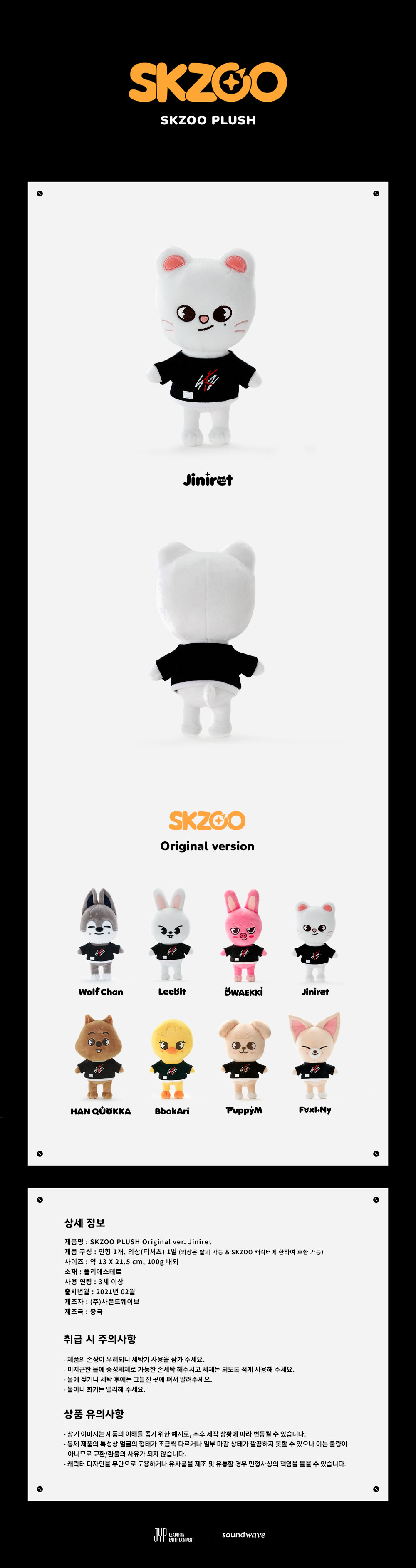 詳細情報運営方針レビューNOTICE* アウトケースは商品保護用制作されスクラッチ及び傷、変色などが包装/配送過程で生じる可能性がございます。これによる交換・返品はできかねます。[SKZOO PLUSH] Original Ver. (Jiniret) PART * The outer case is just for protecting goods. (scratches and discoloration on the case can not be the reason for exchanging or returning) INFORMATION 商品情報提供商品名 : [SKZOO PLUSH] Original Ver. (Jiniret)原産地 : Korea製造/輸入 : JYP Entertainment 사운드웨이브品質保証基準 : 関連法及び消費者紛争の解決規定に従うAS 責任者の連絡先 : Ktown4u, 02-552-0978