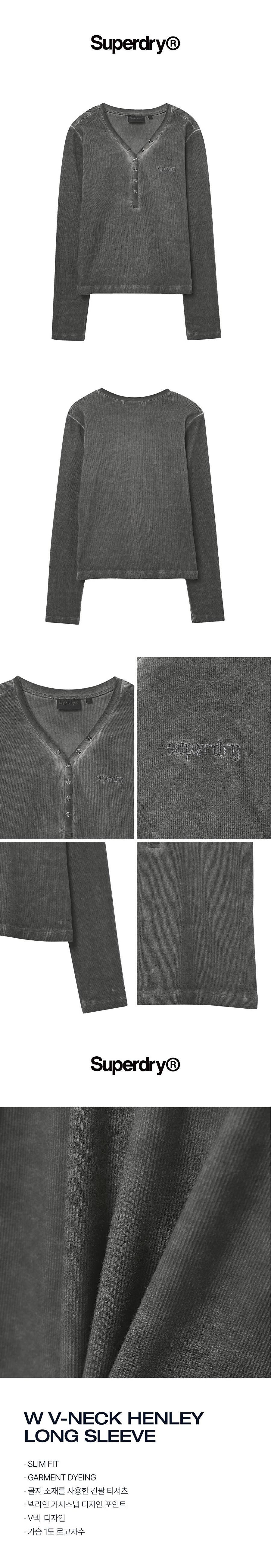 [Superdry] W V-NECK HENLEY LONG SLEEVE_CHARCOAL