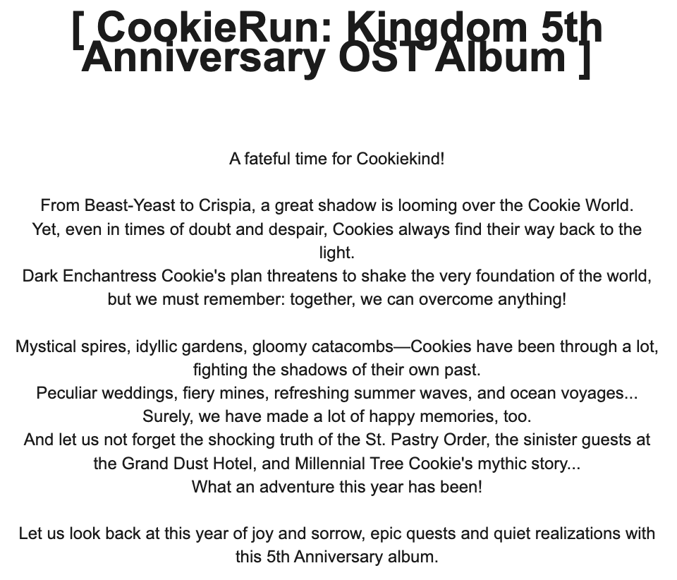 CookieRun: Kingdom Original Soundtrack 5th Anniversary