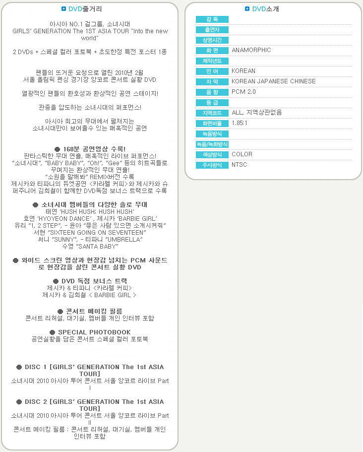 Girls’ Generation[DVD]少女時代 : The 1st Asia Tour [Into The New World](2disc)¥3,93310%¥3,539発売日2015-04-28入荷予定日2015-04-28マイレージ29Goods code33835注文履歴40
