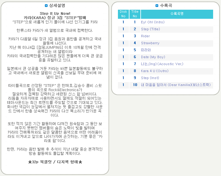 KARAKara(カラ) : 3集 [Step](通常版/32pブックレット)¥1,38810%¥1,249発売日2011-09-08入荷予定日2020-03-20マイレージ10Goods code34108注文履歴19