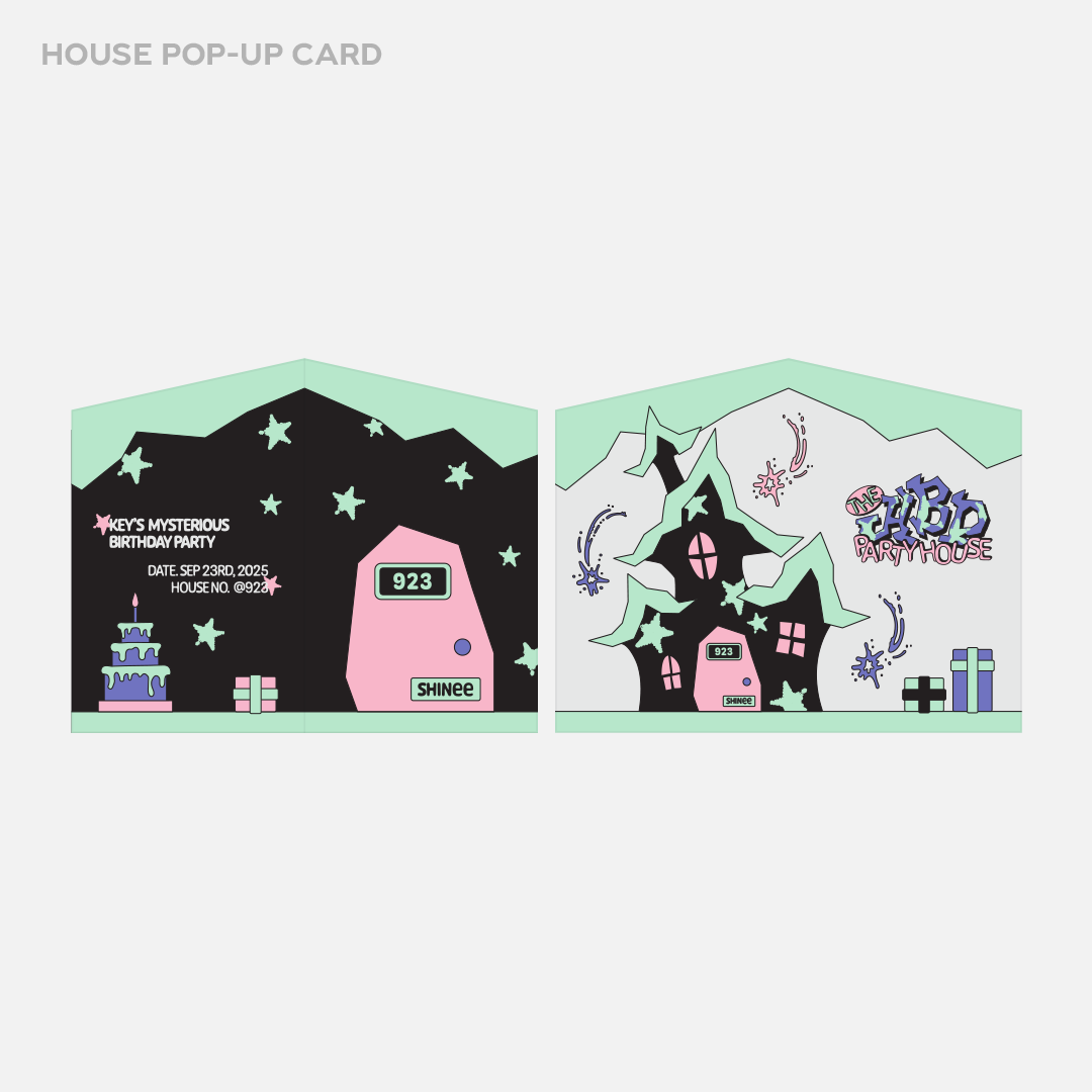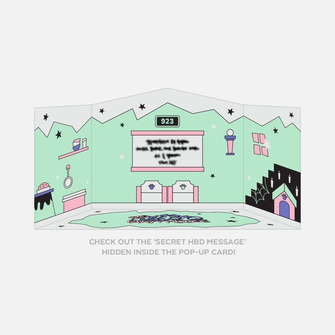 - 사이즈(CM) : 하우스 파우치 18x14.8, 팝업 카드 12.5x10, 스티커 9.5x9.5, 포토카드 5.5x8.5, 열쇠 아크릴 키링 2.5x7.5