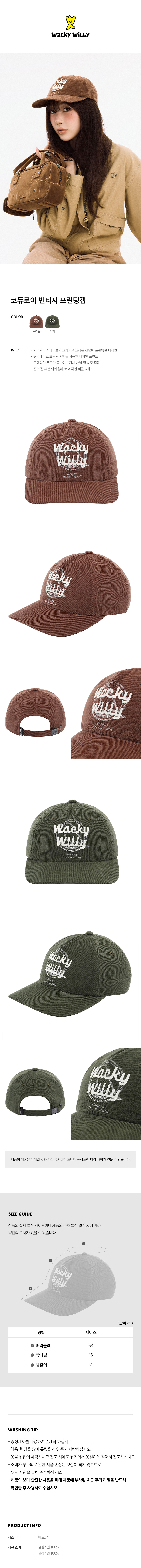 [Wacky Willy x GISELLE] [25FW] コーデュロイ ヴィンテージ プリンティング キャップ ブラウン