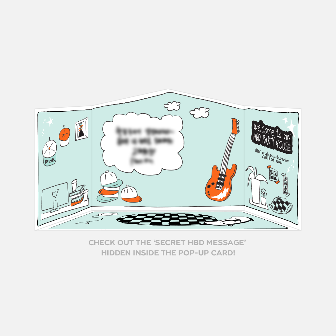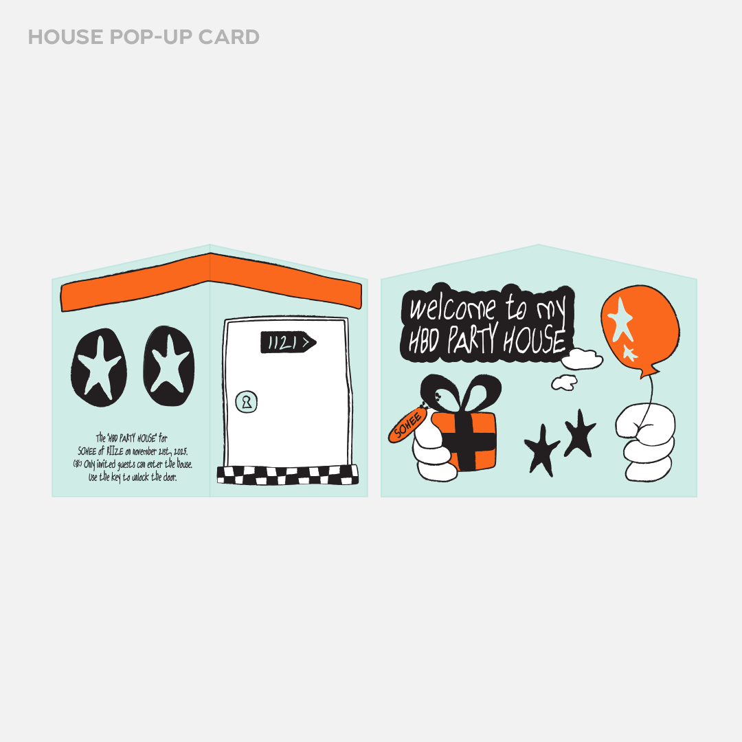 - 사이즈(CM) : 하우스 파우치 18x14.8, 팝업 카드 12.5x10, 스티커 9.5x9.5, 포토카드 5.5x8.5, 열쇠 아크릴 키링 3.6x6.1