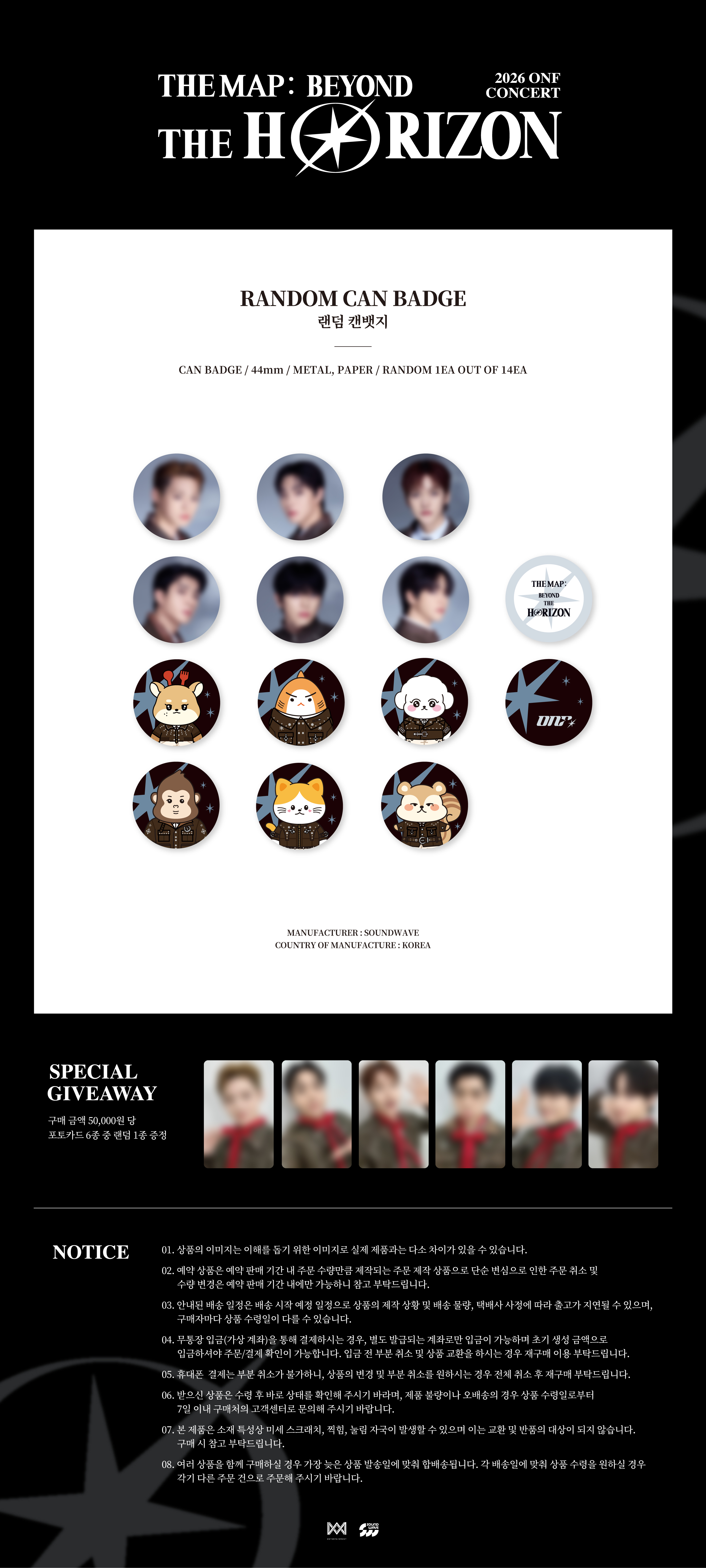 ONFONF - [2026 CONCERT [THE MAP : BEYOND THE HORIZON] MD] RANDOM CAN BADGE¥479発売日2026-01-30入荷予定日2026-01-30マイレージ4Goods codeGD00155248注文履歴30