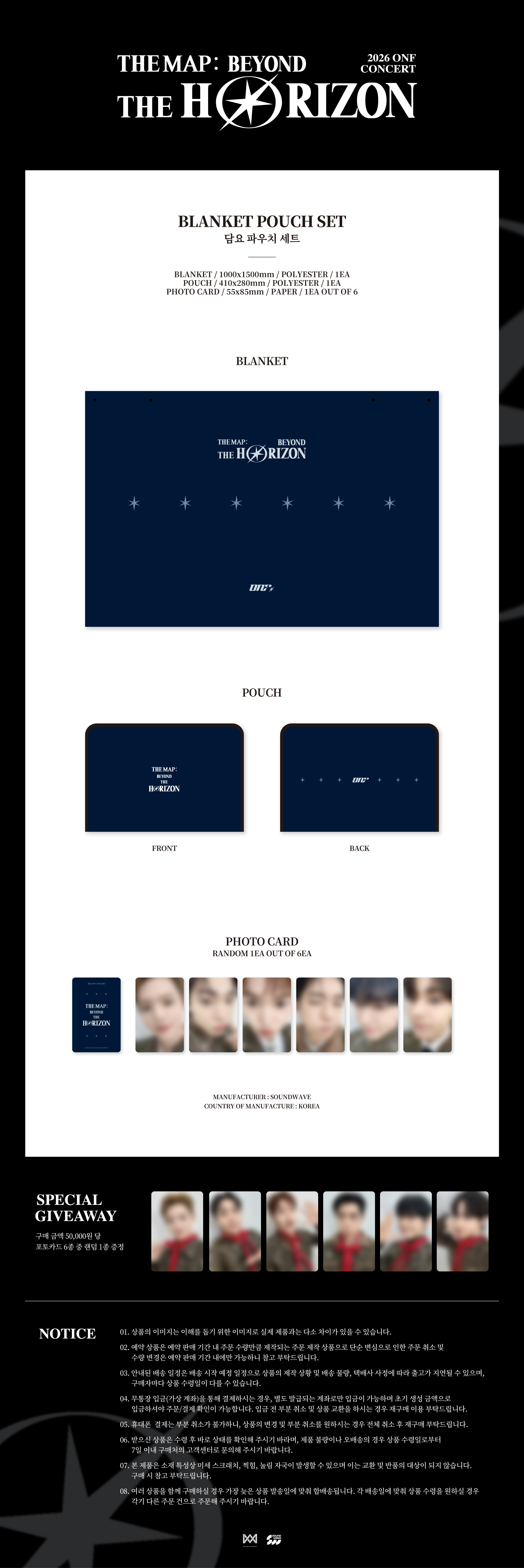 ONFONF - [2026 CONCERT [THE MAP : BEYOND THE HORIZON] MD] BLANKET POUCH SET¥5,742発売日2026-01-30入荷予定日2026-01-30マイレージ48Goods codeGD00155254注文履歴4