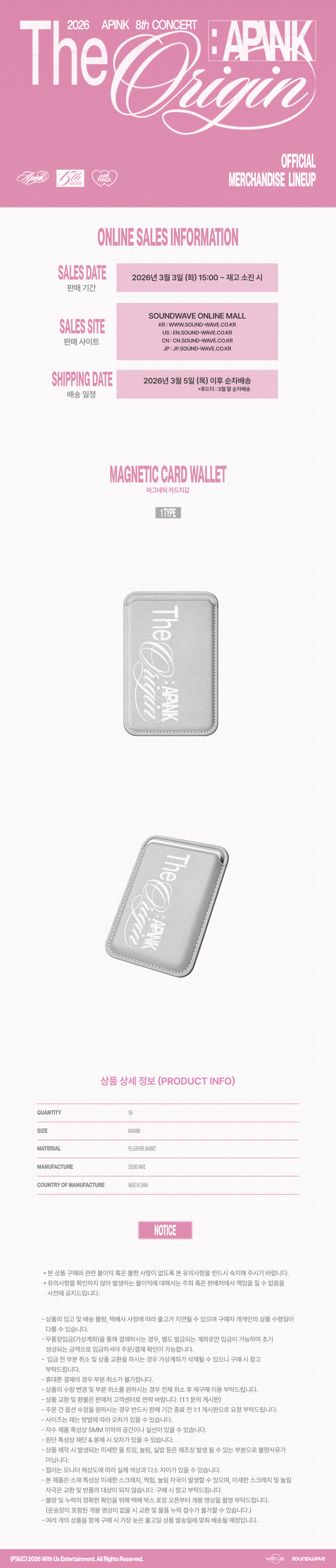 ApinkAPINK - [8TH CONCERT [The Origin APINK] MD] MAGNETIC CARD WALLET¥3,054発売日2026-03-13入荷予定日2026-03-13マイレージ25Goods codeGD00158535