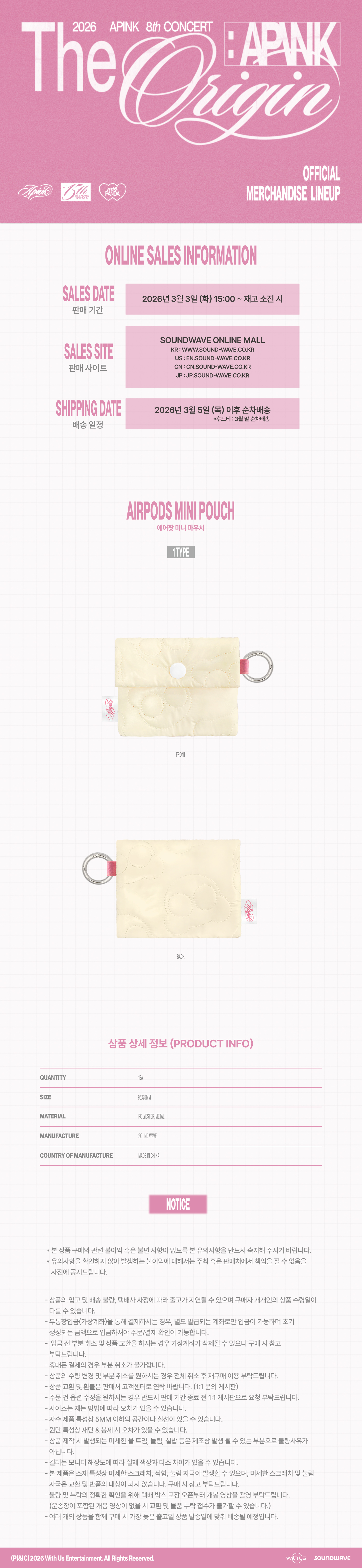 ApinkAPINK - [8TH CONCERT [The Origin APINK] MD] MINI POUCH¥2,809発売日2026-03-13入荷予定日2026-03-13マイレージ23Goods codeGD00158538