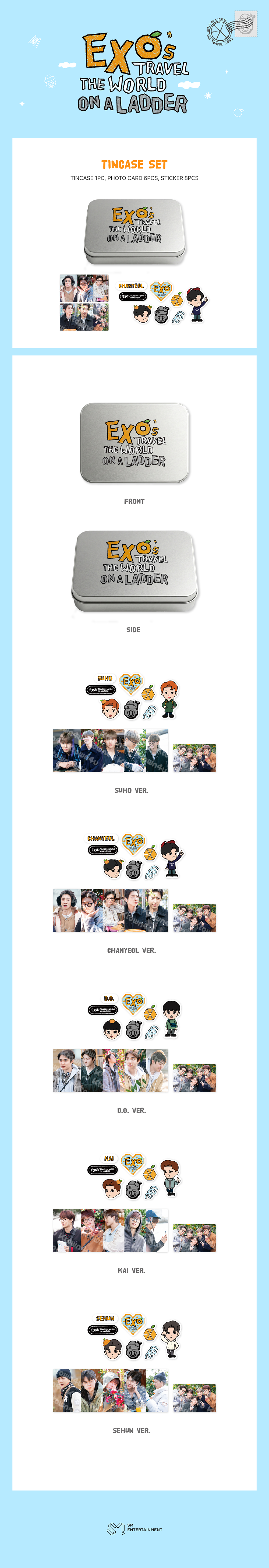 EXO [2026 [EXO의 사다리타고 세계여행5] MD] TINCASE SET PART상품 : 틴케이스 SET (틴케이스 1pc, 포토카드 6pcs, 스티커 8pcs) 소재 : PAPER, METAL 사이즈 : 틴케이스 111 X 81, 포토카드 55 X 85, 스티커 29 X 28 ~ 47 X 72 (MM) 판매원 : SM ENTERTAINMENT 제조국 : 한국 제조 연월 : 2026.03