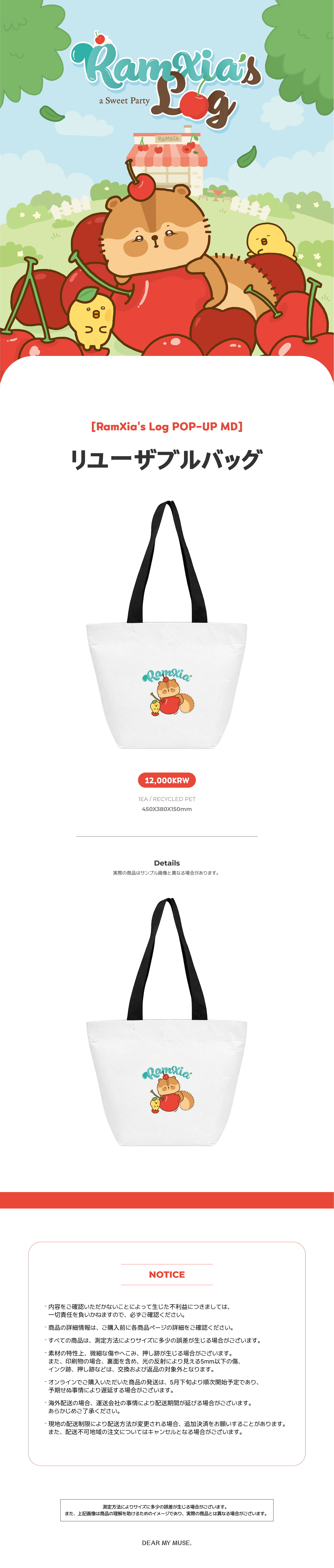 詳細情報運営方針レビューNOTICE* アウトケースは商品保護用制作されスクラッチ及び傷、変色などが包装/配送過程で生じる可能性がございます。これによる交換・返品はできかねます。XIA[[RamXia's Log POP-UP] MD] Reusable Bag PART INFORMATION 商品情報提供商品名 : XIA - [[RamXia's Log POP-UP] MD] リユーザブルバッグ原産地 : Korea製造/輸入 : 品質保証基準 : 関連法及び消費者紛争の解決規定に従うAS 責任者の連絡先 : Ktown4u, 02-552-0978