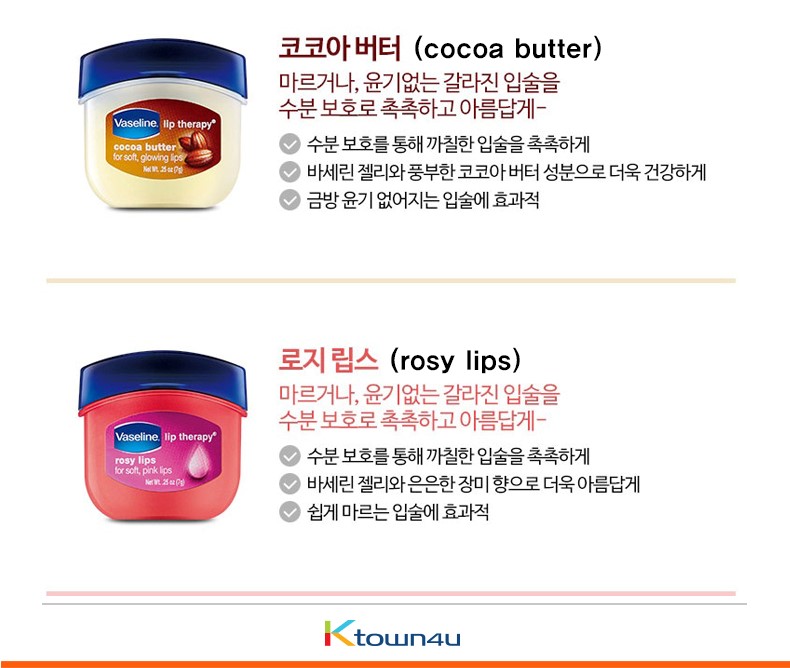詳細情報運営方針レビューNOTICE* アウトケースは商品保護用制作されスクラッチ及び傷、変色などが包装/配送過程で生じる可能性がございます。これによる交換・返品はできかねます。Vaseline Lip Therapy mini lipbam 7g INFORMATION *This product was used by bts Jungkook 商品情報提供商品名 : Vaselineリップテラピミニリプバムロッジリップス7g原産地 : Korea製造/輸入 : 品質保証基準 : 関連法及び消費者紛争の解決規定に従うAS 責任者の連絡先 : Ktown4u, 02-552-0978