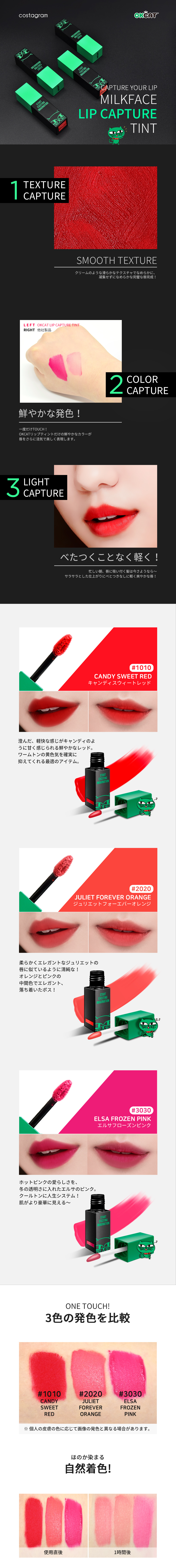 詳細情報運営方針レビューNOTICE* アウトケースは商品保護用制作されスクラッチ及び傷、変色などが包装/配送過程で生じる可能性がございます。これによる交換・返品はできかねます。[costagram] OKCAT MILK FACE LIP CAPTURE TINT #2020 Juliet forever orange 商品情報提供商品名 : [costagram] オクキャットミルクフェイスリップティント(#2020 Juliet forever orange)原産地 : Korea製造/輸入 : 品質保証基準 : 関連法及び消費者紛争の解決規定に従うAS 責任者の連絡先 : Ktown4u, 02-552-0978
