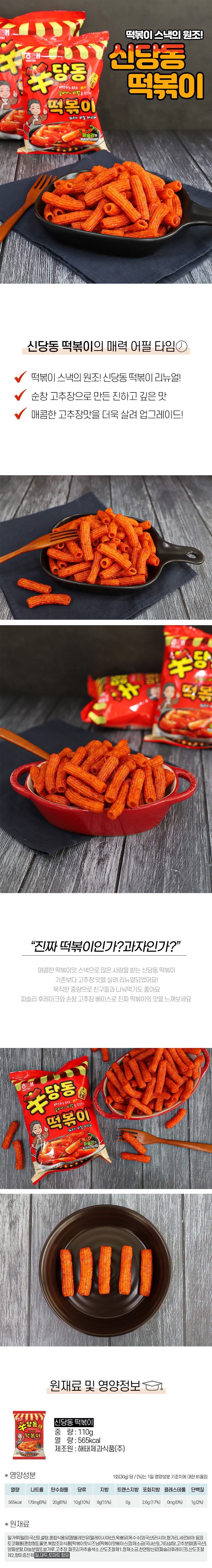 詳細情報運営方針レビューNOTICE* アウトケースは商品保護用制作されスクラッチ及び傷、変色などが包装/配送過程で生じる可能性がございます。これによる交換・返品はできかねます。[HAITAI] Sindang-dong Tteokbokki Snack 110g 商品情報提供商品名 : シンダンドントッポッキ 110g*1EA原産地 : Korea製造/輸入 : 品質保証基準 : 関連法及び消費者紛争の解決規定に従うAS 責任者の連絡先 : Ktown4u, 02-552-0978