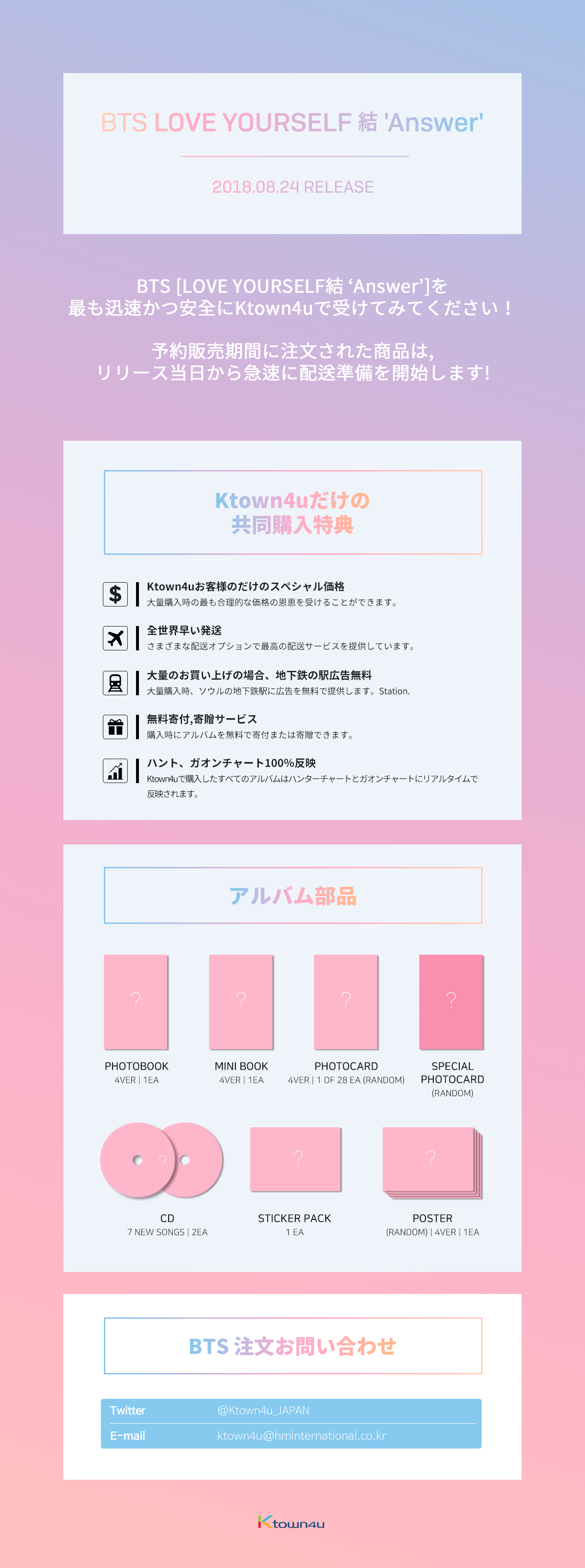 詳しい内容につきましてはBig Hit Shopの告知事項(goo.gl/1xbxSk)をご参考にお願い致します。