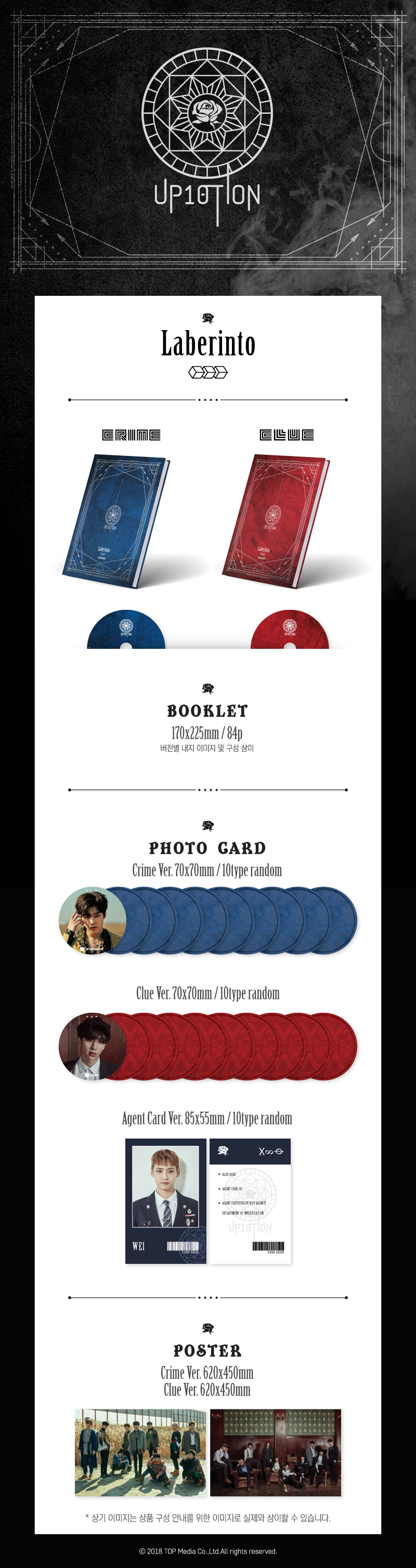 상반된 컨셉에 맞춰 이번 미니 앨범은 ‘Crime Ver.’과 ‘Clue Ver.’ 총 2종으로 구성되어 있어 업텐션의 반전 매력을 한 눈에 확인할 수 있다. ‘Crime Ver.’에는 도망자로 변신한 업텐션의 와일드하고 러프한 모습들을, ‘Clue Ver.’에는 추격자 컨셉을 바탕으로 절도 있으면서도 각 잡힌 업텐션의 매력들을 확인할 수 있다.