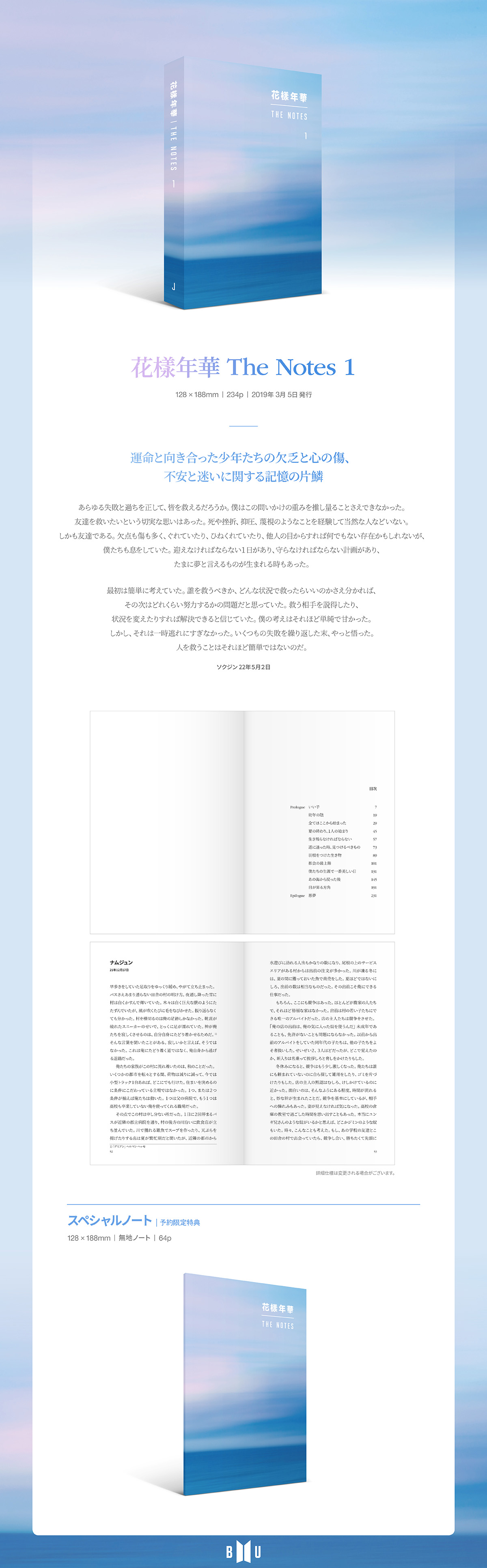 BTS[日本語バージョン] BTS - 花樣年華 THE NOTES 1 (J) (without preorder benefit) (*品切れの際にはご注文をキャンセルさせて頂く場合があります。)¥3,227発売日2019-03-05入荷予定日2019-03-13マイレージ26Goods codeGD00036787