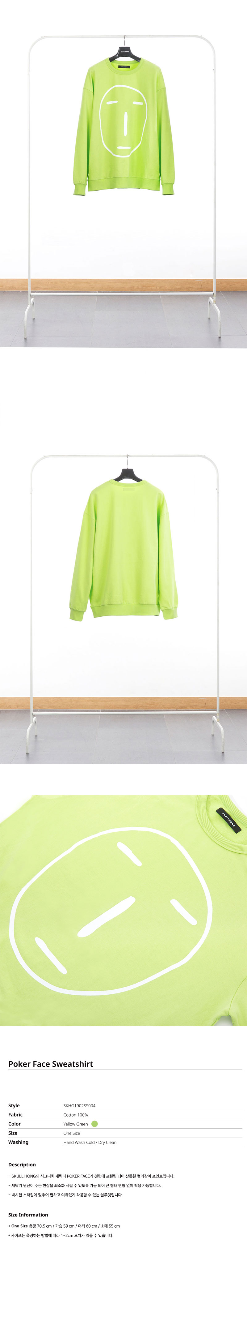 [SKULLHONG] POKER FACE SWEATSHIRT YELLOEW GREEN [19SS] ポーカーフェイススウェットシャツ イエローグリーン