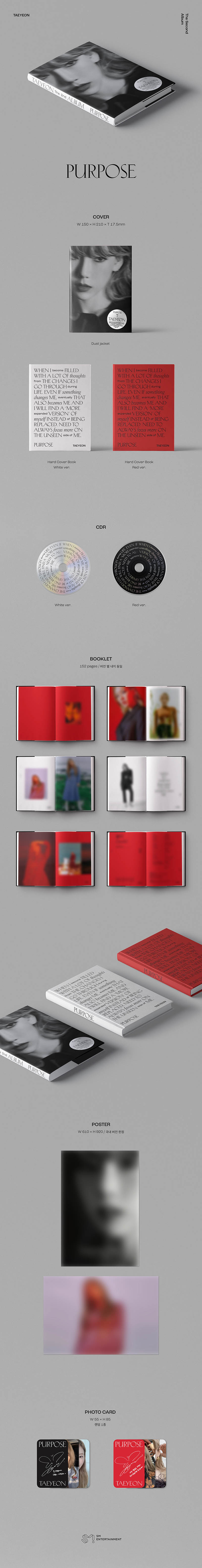 특히, 이번 앨범명 ‘Purpose’는 태연에게 음악이 가장 중요한 삶의 방향성이자 목표 중 하나라는 의미를 담고 있으며, 신곡 10곡과 싱글 발표곡 ‘사계 (Four Seasons)’, ‘Blue’까지 다채로운 색깔의 총 12곡으로 구성되어, 태연의 한층 짙은 음악 감성과 풍성한 보컬 매력을 만나기에 충분하다.