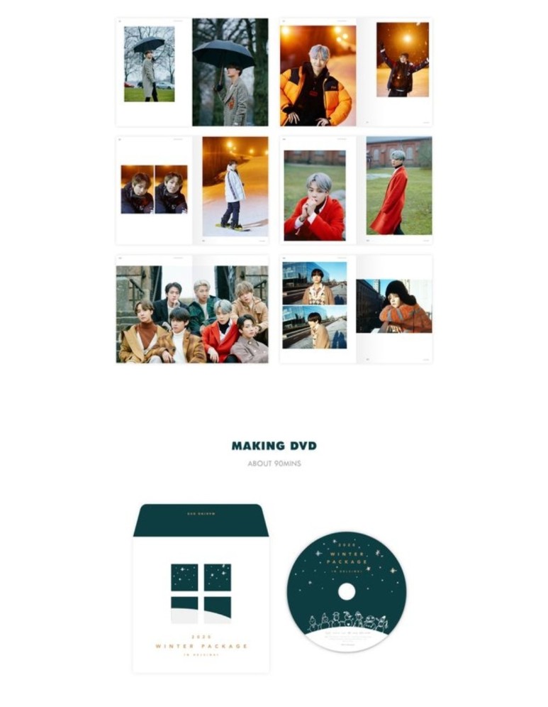 詳細情報運営方針レビューNOTICE* アウトケースは商品保護用制作されスクラッチ及び傷、変色などが包装/配送過程で生じる可能性がございます。これによる交換・返品はできかねます。[Photobook&DVD] BTS 2020 WINTER PACKAGE PART * The outer case is just for protecting goods. (scratches and discoloration on the case can not be the reason for exchanging or returning) - OUT BOX : 224*311*50mm - PHOTOBOOK : 204p - MAKING DVD : about 90mins - PHOTOCASE + ACCORDION PHOTOCARD - PHOTO SET : 7ea 1set - PHOTO STAND : 1ea - BOOKMARK : 1ea - MINI PHOTOBOOK : 20p / Random 1ea TRACK LIST INFORMATION 商品情報提供商品名 : 【韓国盤】 [Photobook&DVD] BTS - 2020 WINTER PACKAGE(* 品切れの際にはご注文をキャンセルさせて頂く場合があります。)原産地 : Korea製造/輸入 : BIGHIT Entertainment Big Hit Entertainment品質保証基準 : 関連法及び消費者紛争の解決規定に従うAS 責任者の連絡先 : Ktown4u, 02-552-0978