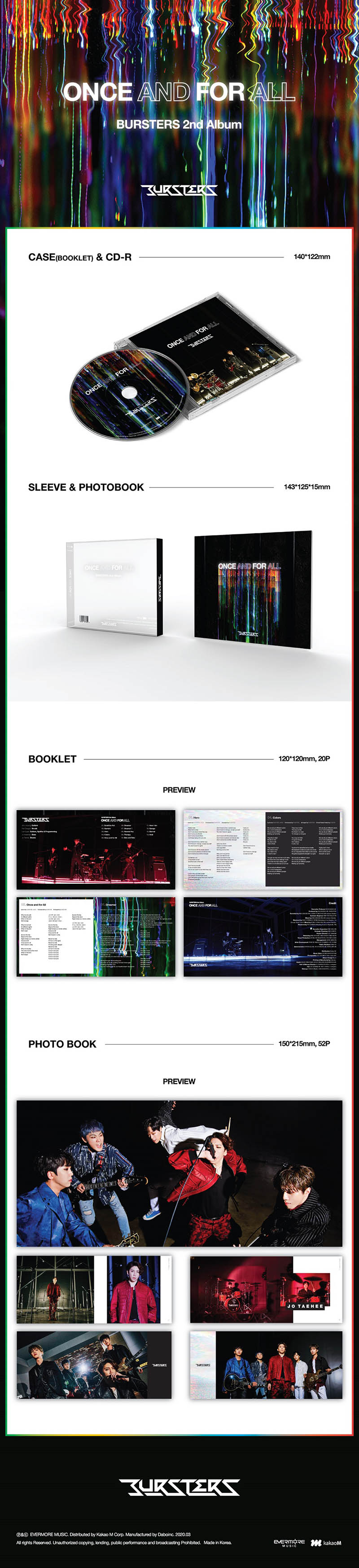 2017년 4월 첫 번째 정규앨범 [LIVE IN HOPE] 이후 3년 만에 발매하는 버스터즈의 두 번째 정규앨범 [Once and for All]은 그 어느 때 보다 심혈을 기울여 작업한 앨범으로 장르를 넘나드는 과감한 음악적 시도와 버스터즈만의 묵직하고 강렬한 메시지를 하드코어적인 록 사운드로 담아낸 앨범이다.