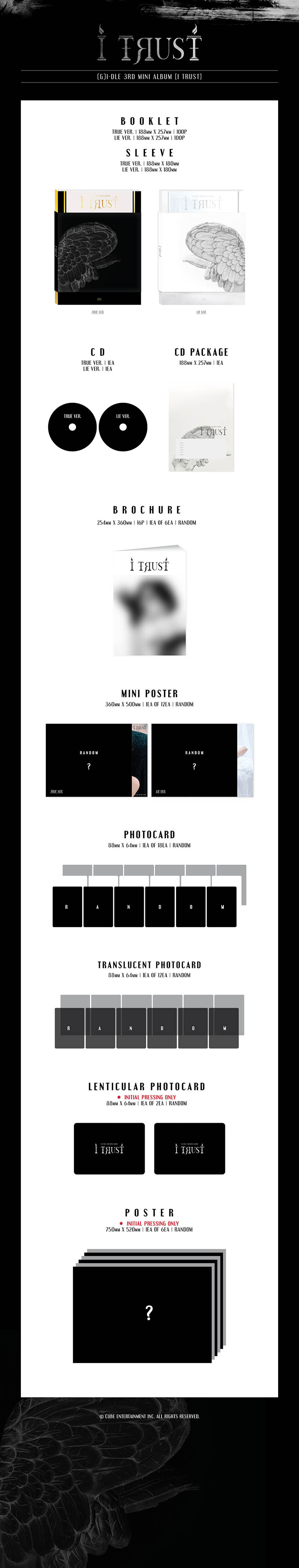 독보적인 콘셉트 소화력과 무한한 가능성으로 그들만의 장르를 구축하는 아티스트 (여자)아이들이 9개월 만에 세 번째 미니앨범 [I trust]를 발표한다.