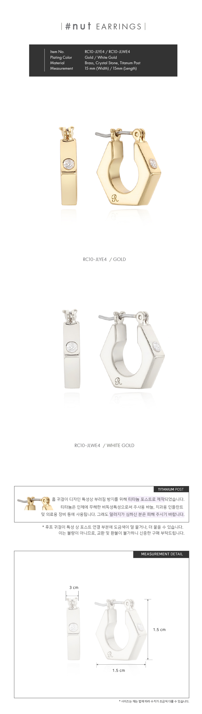 詳細情報運営方針レビューNOTICE* アウトケースは商品保護用制作されスクラッチ及び傷、変色などが包装/配送過程で生じる可能性がございます。これによる交換・返品はできかねます。NUT HOOP EARRINGS (WHITE GOLD) INFORMATION *celebrity cosponsor jewelry Ritamoica* >>URL :https://bit.ly/3bsdf67 商品情報提供商品名 : [RITA MONICA] NUT HOOP EARRINGS (WHITE GOLD)原産地 : Korea製造/輸入 : 보우글로벌品質保証基準 : 関連法及び消費者紛争の解決規定に従うAS 責任者の連絡先 : Ktown4u, 02-552-0978