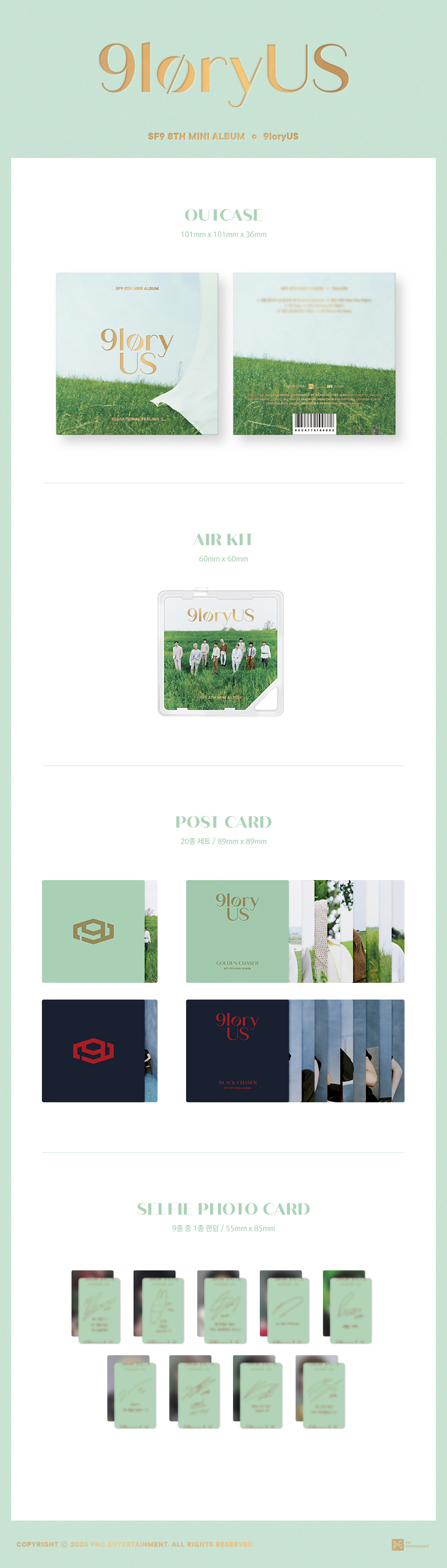 ‘9loryUS’ 앨범은 지난 1월 정규 1집 이후 약 6개월만의 신보이다. SF9은 지난 1월 타이틀곡 ‘Good Guy’로 음악방송 첫 1위를 달성하는 등 2020년 들어 가파른 상승세를 보이고 있다. 최근에는 그룹 활동과 더불어 연기, 예능, 음악방송 MC 등 각자 다방면에서 활발하게 활동하며 대중에게 눈도장을 찍고 있다.