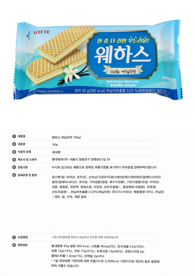 詳細情報運営方針レビューNOTICE* アウトケースは商品保護用制作されスクラッチ及び傷、変色などが包装/配送過程で生じる可能性がございます。これによる交換・返品はできかねます。[LOTTE] ウエハースイチゴ味 50g*1EA 商品情報提供商品名 : [ロッテ] ウエハースバニラ味 50g*1EA原産地 : Korea製造/輸入 : 品質保証基準 : 関連法及び消費者紛争の解決規定に従うAS 責任者の連絡先 : Ktown4u, 02-552-0978