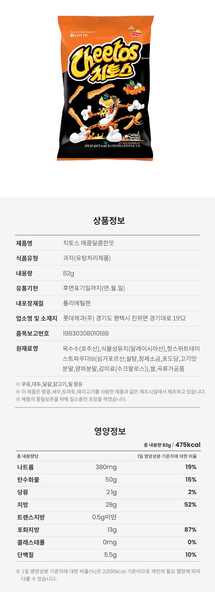 詳細情報運営方針レビューNOTICE* アウトケースは商品保護用制作されスクラッチ及び傷、変色などが包装/配送過程で生じる可能性がございます。これによる交換・返品はできかねます。[LOTTE] チートス甘辛い小サイズ82g*1EA *運送会社のポリシーにより、商品の重さと体積のうち、より大きい重量に基づいて送料が決まりますのでご了承くださいませ。 商品情報提供商品名 : [ロッテ]チートス甘辛い小サイズ82g*1EA原産地 : Korea製造/輸入 : 品質保証基準 : 関連法及び消費者紛争の解決規定に従うAS 責任者の連絡先 : Ktown4u, 02-552-0978