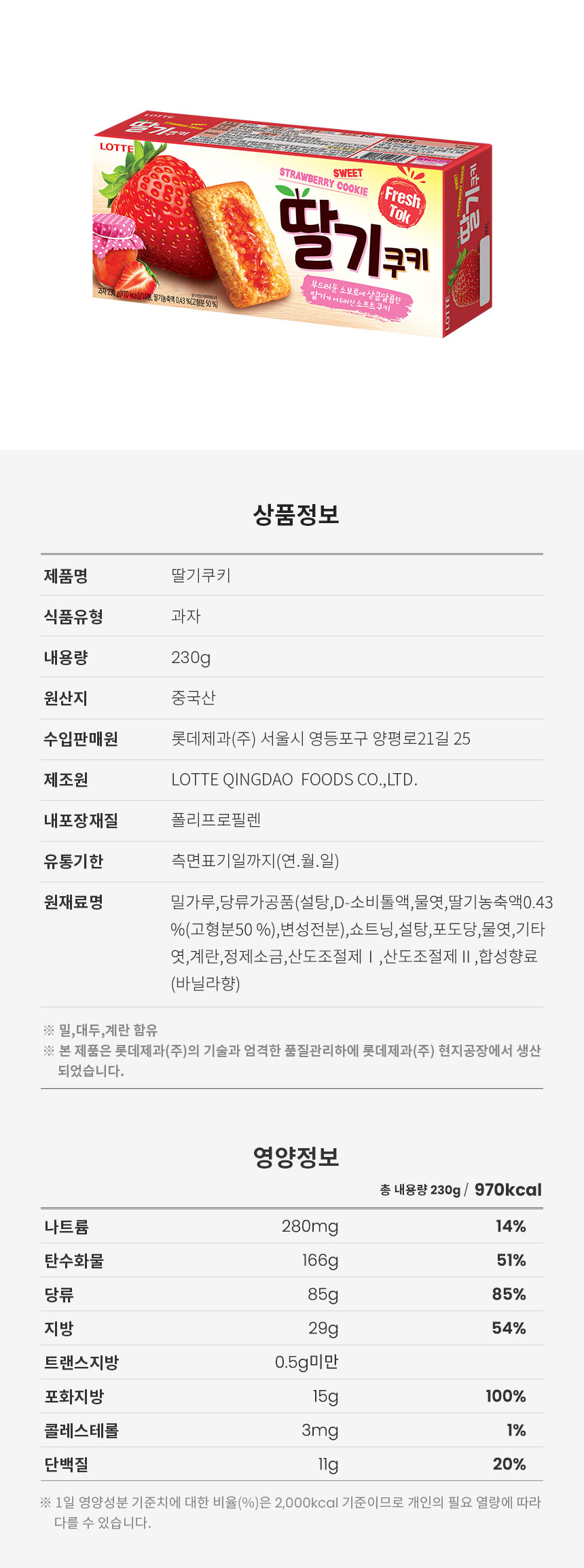 詳細情報運営方針レビューNOTICE* アウトケースは商品保護用制作されスクラッチ及び傷、変色などが包装/配送過程で生じる可能性がございます。これによる交換・返品はできかねます。[LOTTE] Strawberry Cookie 230g*1BOX 商品情報提供商品名 : [LOTTE] Strawberry Cookie 230g*1BOX原産地 : Korea製造/輸入 : 品質保証基準 : 関連法及び消費者紛争の解決規定に従うAS 責任者の連絡先 : Ktown4u, 02-552-0978