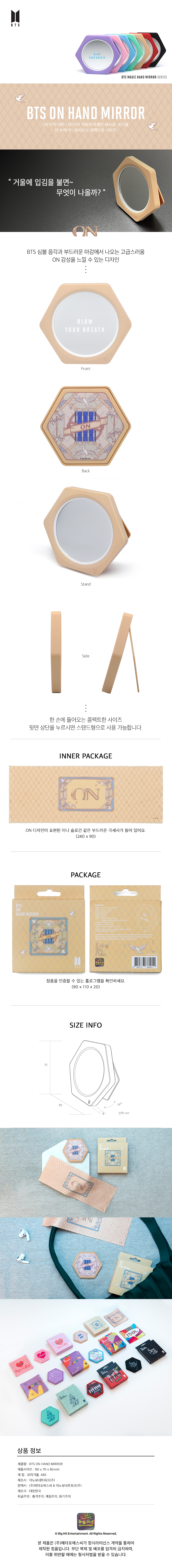 詳細情報運営方針レビューNOTICE* アウトケースは商品保護用制作されスクラッチ及び傷、変色などが包装/配送過程で生じる可能性がございます。これによる交換・返品はできかねます。[BTS HAND MIRROR] BTS ON HAND MIRROR 商品情報提供商品名 : [BTS HAND MIRROR] BTS ON Hand Mirror原産地 : Korea製造/輸入 : 오앤에스미디어 오앤에스미디어品質保証基準 : 関連法及び消費者紛争の解決規定に従うAS 責任者の連絡先 : Ktown4u, 02-552-0978