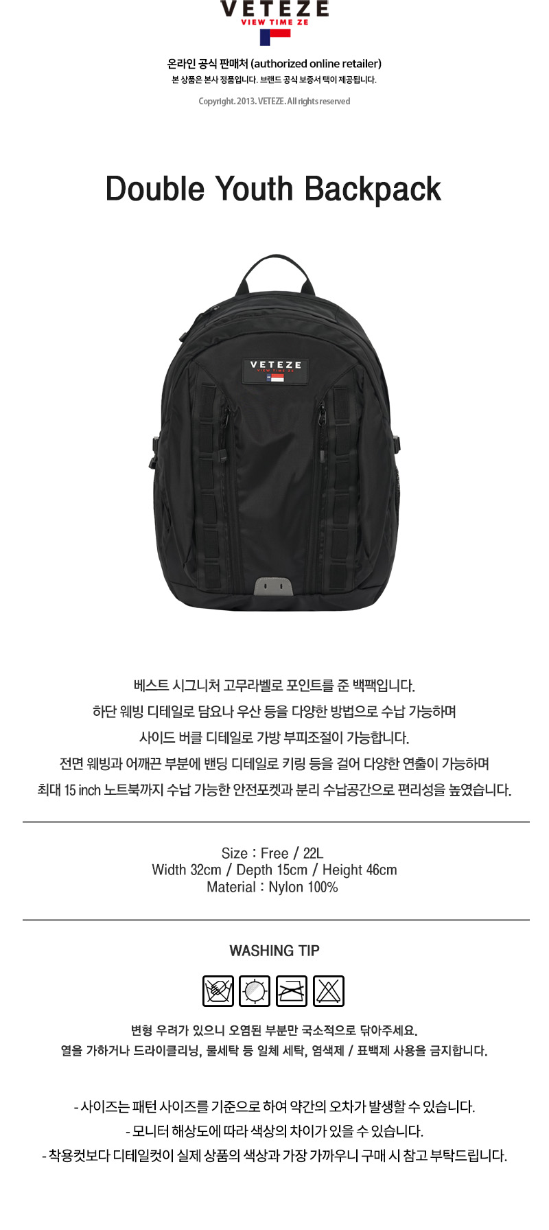 詳細情報運営方針レビューNOTICE* アウトケースは商品保護用制作されスクラッチ及び傷、変色などが包装/配送過程で生じる可能性がございます。これによる交換・返品はできかねます。[VETEZE] Double Youth Backpack BLACK PART INFORMATION 商品情報提供商品名 : [VETEZE] Double Youth Backpack原産地 : Korea製造/輸入 : (주)브이티제트(VTZ) (주)브이티제트(VTZ)品質保証基準 : 関連法及び消費者紛争の解決規定に従うAS 責任者の連絡先 : Ktown4u, 02-552-0978