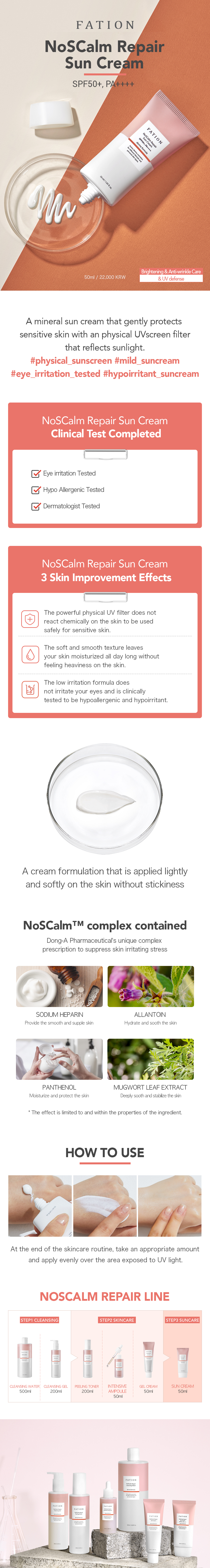 詳細情報運営方針レビューNOTICE* アウトケースは商品保護用制作されスクラッチ及び傷、変色などが包装/配送過程で生じる可能性がございます。これによる交換・返品はできかねます。 [Fation] NoSCalm Repair Sun Cream SPF50+ PA++++ PART * The outer case is just for protecting goods. (scratches and discoloration on the case can not be the reason for exchanging or returning) INFORMATION 商品情報提供商品名 : [Fation] NoSCalm Repair Sun Cream SPF50+ PA++++原産地 : Korea製造/輸入 : 동아제약 (주) 일산지점 동아제약 (주) 일산지점品質保証基準 : 関連法及び消費者紛争の解決規定に従うAS 責任者の連絡先 : Ktown4u, 02-552-0978