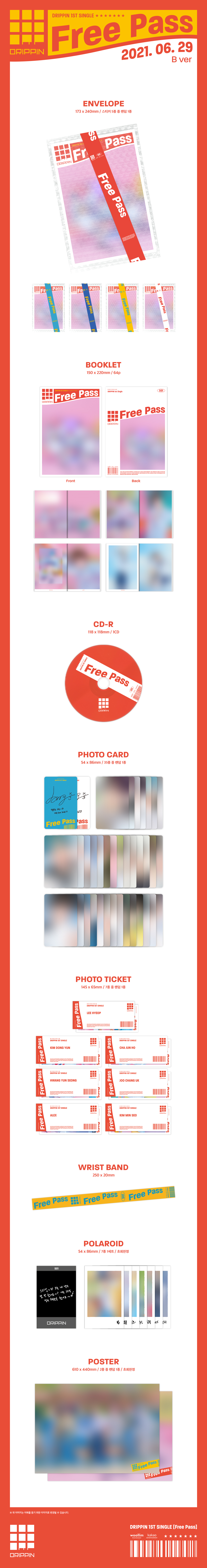 ‘꿈을 향해 내딛는 청춘의 의지’를 담은 두 번째 미니앨범 [A Better Tomorrow]가 태국, 필리핀, 일본 등 아이튠즈 K팝 앨범차트 상위권에 이름을 올리며 국내를 넘어 글로벌 팬들에게 DRIPPIN(드리핀)의 존재감을 드러냈다면 이번 첫 번째 싱글 앨범 [Free Pass]는 DRIPPIN(드리핀)만의 특유의 청량함, 사랑스러운 퍼포먼스로 담아낸 앨범으로 다시 한번 글로벌 팬들의 마음을 사로잡을 예정이다.