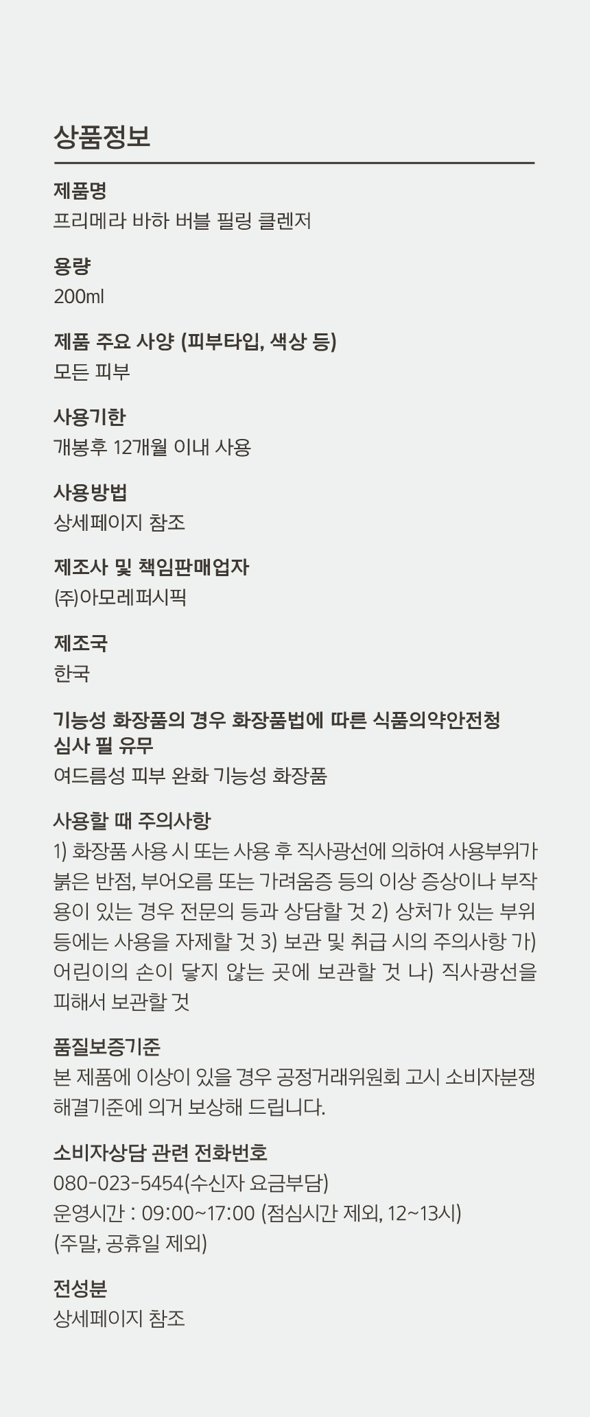 詳細情報運営方針レビューNOTICE* アウトケースは商品保護用制作されスクラッチ及び傷、変色などが包装/配送過程で生じる可能性がございます。これによる交換・返品はできかねます。 [primera] BHA Bubble Peeling Cleanser 200ml PART * The outer case is just for protecting goods. (scratches and discoloration on the case can not be the reason for exchanging or returning) INFORMATION 商品情報提供商品名 : BHA Bubble Peeling Cleanser 200ml原産地 : Korea製造/輸入 : (주)아모레퍼시픽 (주)아모레퍼시픽品質保証基準 : 関連法及び消費者紛争の解決規定に従うAS 責任者の連絡先 : Ktown4u, 02-552-0978