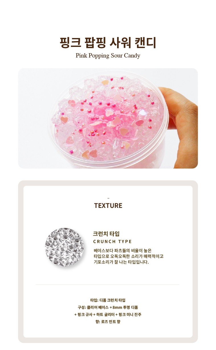詳細情報運営方針レビューNOTICE* アウトケースは商品保護用制作されスクラッチ及び傷、変色などが包装/配送過程で生じる可能性がございます。これによる交換・返品はできかねます。PINK POPPING SOUR CANDY 商品情報提供商品名 : PINK POPPING SOUR CANDY原産地 : Korea製造/輸入 : 팔레트슬라임 팔레트슬라임品質保証基準 : 関連法及び消費者紛争の解決規定に従うAS 責任者の連絡先 : Ktown4u, 02-552-0978