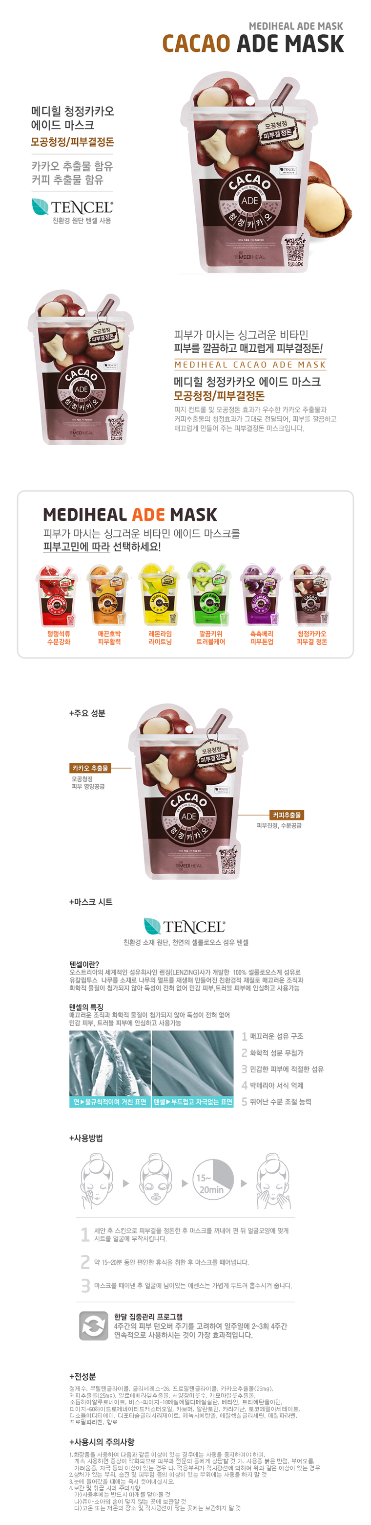 詳細情報運営方針レビューNOTICE* アウトケースは商品保護用制作されスクラッチ及び傷、変色などが包装/配送過程で生じる可能性がございます。これによる交換・返品はできかねます。 [MEDIHEAL] CACAO VITA MASK Ver.2 PART * The outer case is just for protecting goods. (scratches and discoloration on the case can not be the reason for exchanging or returning) INFORMATION 商品情報提供商品名 : 03 Cacao 原産地 : Korea製造/輸入 : (주)이시스코스메틱 엘앤피코스메틱(주)品質保証基準 : 関連法及び消費者紛争の解決規定に従うAS 責任者の連絡先 : Ktown4u, 02-552-0978