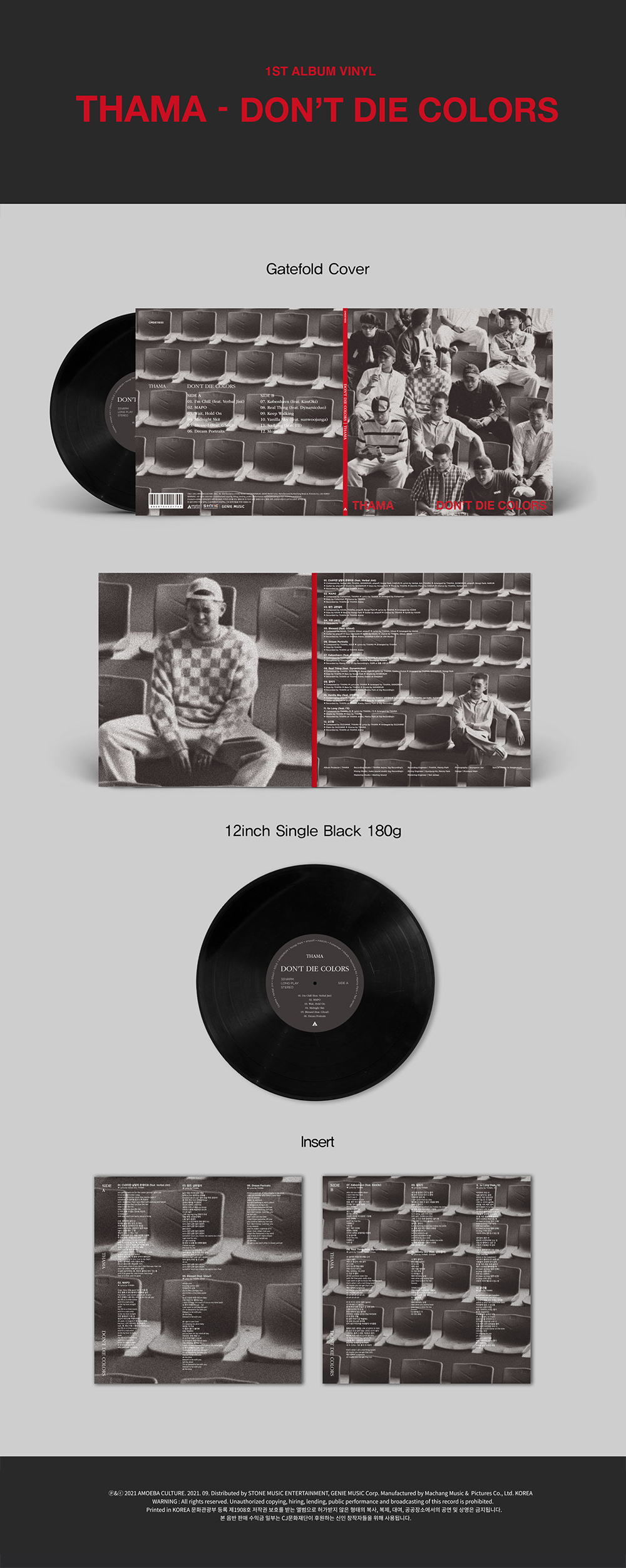 4년 동안 싱글앨범, 미니앨범 뿐만 아니라 개리, 다이나믹 듀오, 기리보이, EXO, 키드밀리, 죠지, 강다니엘 등의 피처링, 프로듀싱으로 음악 커리어를 보여준 THAMA. 그의 오랜 기다림 속 나오는 첫 번째 앨범 [DON'T DIE COLORS]
