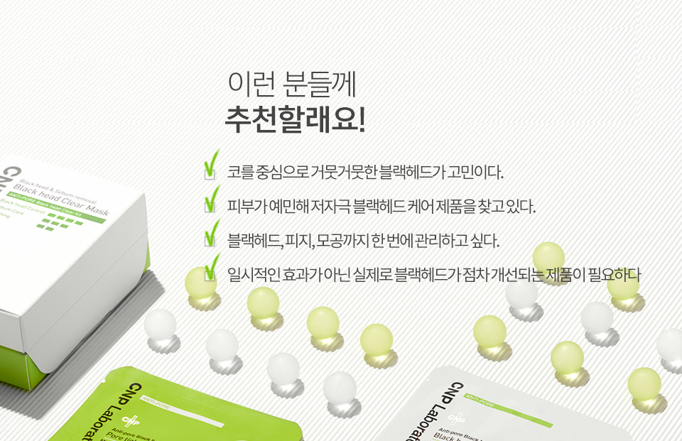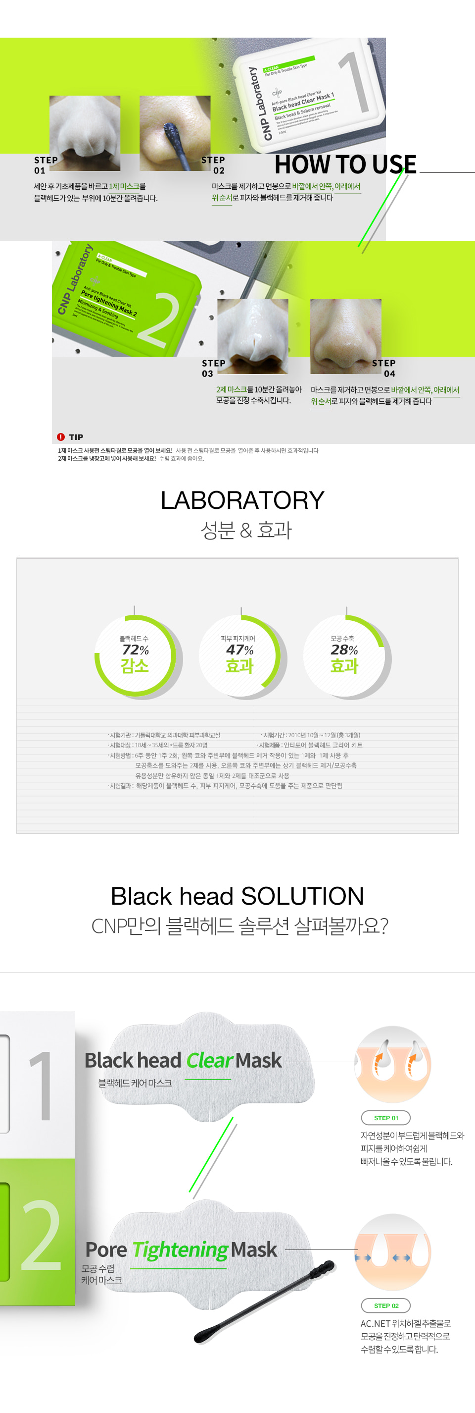 詳細情報運営方針レビューNOTICE* アウトケースは商品保護用制作されスクラッチ及び傷、変色などが包装/配送過程で生じる可能性がございます。これによる交換・返品はできかねます。 [CNP] ANTI-PORE BLACK HEAD CLEAR KIT 10EA PART * The outer case is just for protecting goods. (scratches and discoloration on the case can not be the reason for exchanging or returning) INFORMATION 商品情報提供商品名 : Anti-Pore Black Head Clear Kit 10EA原産地 : Korea製造/輸入 : (주)엘지생활건강 (주)엘지생활건강品質保証基準 : 関連法及び消費者紛争の解決規定に従うAS 責任者の連絡先 : Ktown4u, 02-552-0978