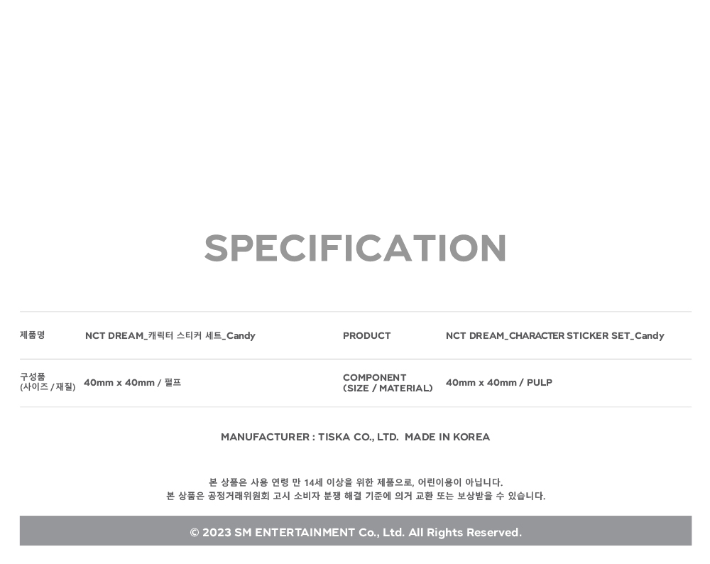 詳細情報運営方針レビューNOTICE* アウトケースは商品保護用制作されスクラッチ及び傷、変色などが包装/配送過程で生じる可能性がございます。これによる交換・返品はできかねます。NCT DREAM CHARACTER STICKER [Candy] PART * 아웃박스는 상품 보호를 위한 충격 방지용으로 제작되어 미세한 스크래치 및 흠집, 변색 등이 포장/배송 과정에서 생겨날 수 있고 이는 교환 사유가 될 수 없습니다. * The outer case is just for protecting goods. (scratches and discoloration on the case can not be the reason for exchanging or returning). INFORMATION 商品情報提供商品名 : NCT DREAM - CHARACTER STICKER_Candy原産地 : Korea製造/輸入 : 티스카品質保証基準 : 関連法及び消費者紛争の解決規定に従うAS 責任者の連絡先 : Ktown4u, 02-552-0978