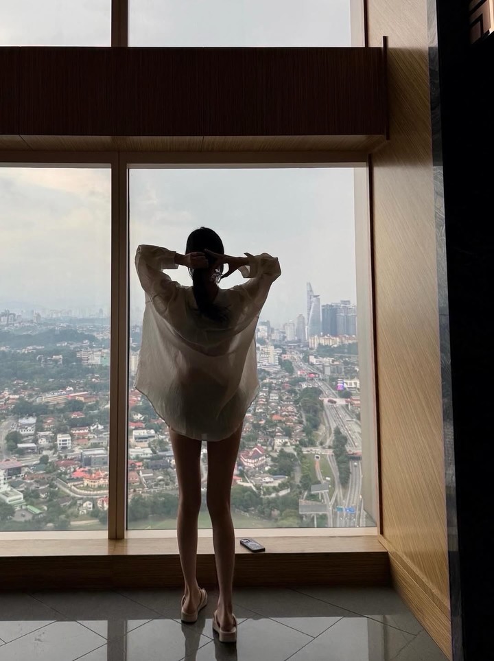 透过落地窗可见的都市全景与Yuju感性的演绎相互呼应,无声中吸引了粉丝的关注与热议。