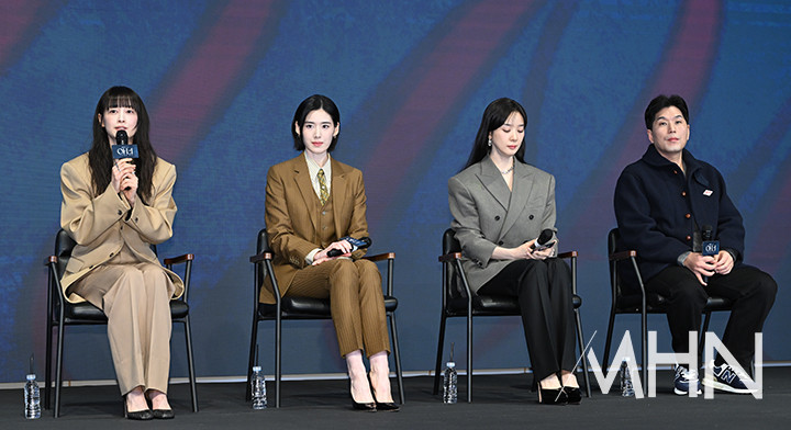 (MHN 이현지 기자) 배우 이나영이 26일 오후 서울 구로구 더세인트에서 진행된 ENA 월화드라마 '아너 : 그녀들의 법정' 제작발표회에 참석해 질문에 답하고 있다.