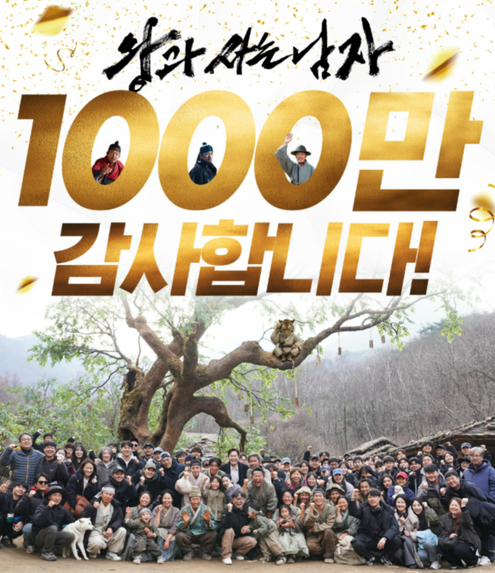 한편, ‘왕과 사는 남자’는 지난 6일 오후 6시 35분경 누적 관객 수 1,000만 명을 돌파했다. 2024년 ‘범죄도시4’ 이후 약 2년 만에 탄생한 천만 영화이자, 국내 개봉작 중 역대 34번째(한국 영화로는 25번째) 천만 기록이다.