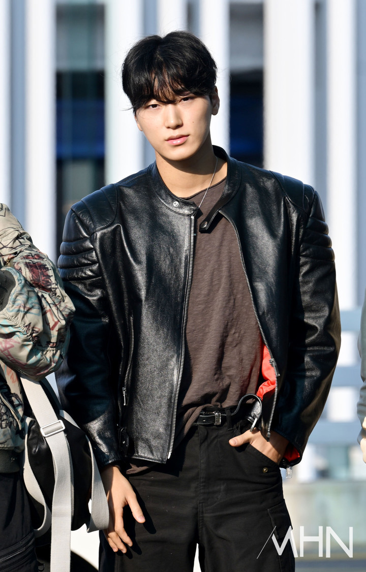 에이티즈 산이 출국하고 있다.