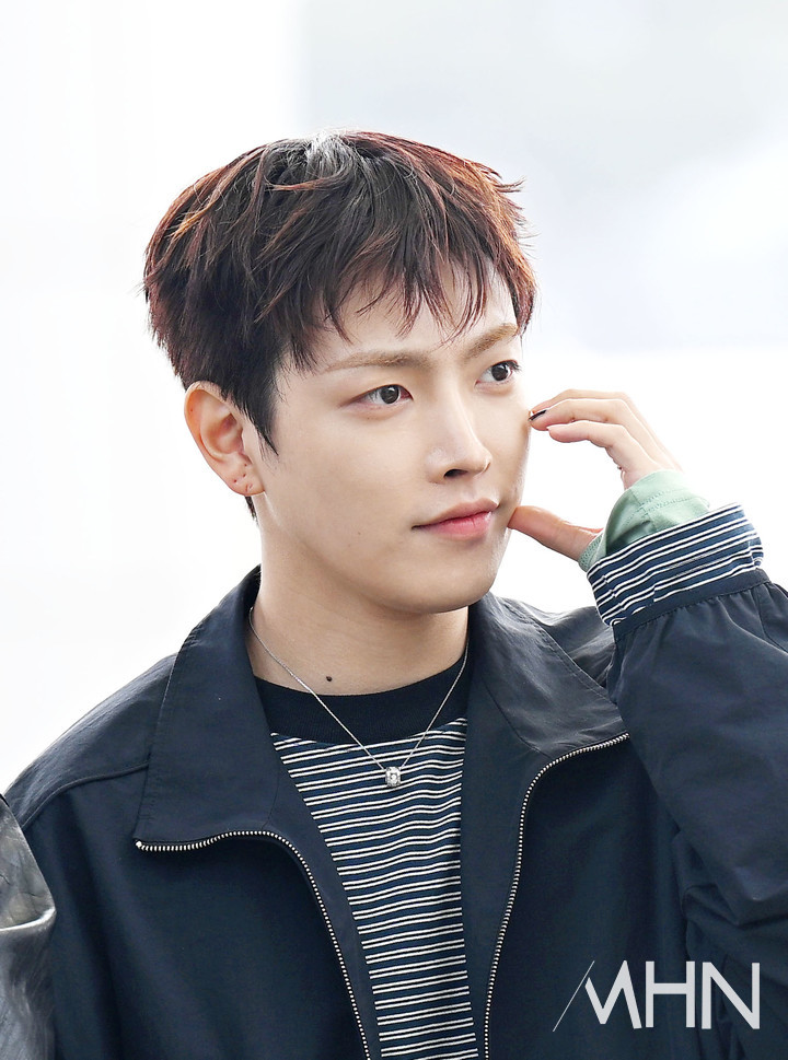 에이티즈 홍중이 출국하고 있다.