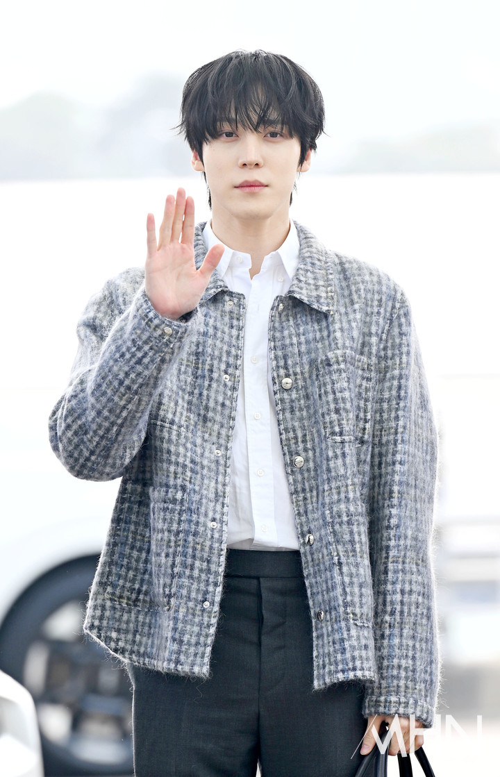 에이티즈 윤호가 출국하고 있다.