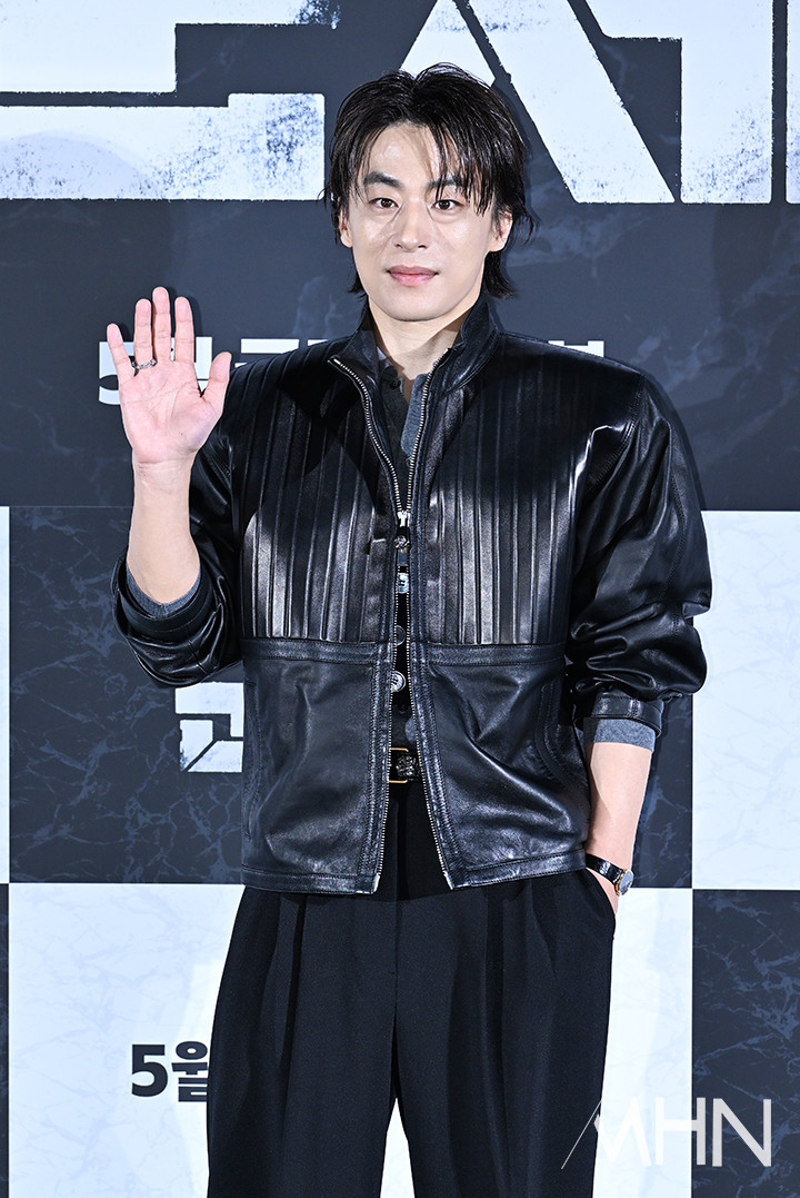 (MHN 이현지 기자) 배우 구교환이 6일 오전 서울 용산구 CGV 용산아이파크몰점에서 진행된 '군체' 제작보고회에 참석해 포토타임을 갖고 있다.