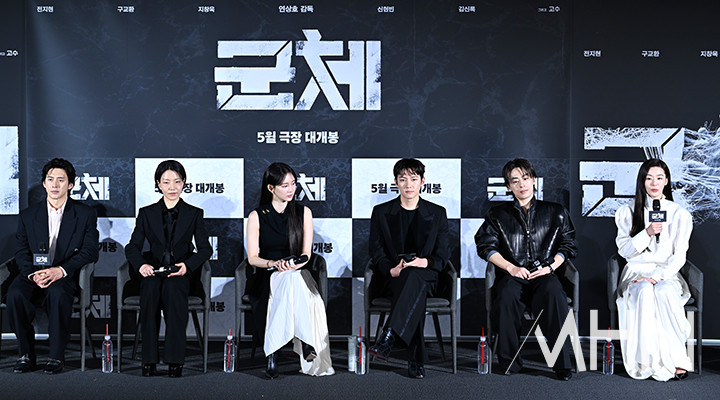 제작보고회에는 연상호 감독과 배우 전지현, 구교환, 지창욱, 신현빈, 김신록, 고수가 참석했다.
